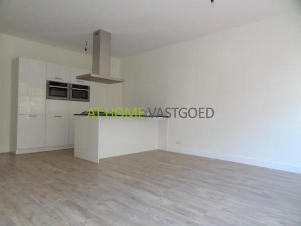 First floor: Spacious living room with a beautiful open kitchen. The kitchen has a cooking island with a composite worktop and hob. The wall cabinets are white gloss. With appliances such as refrigerator, freezer, oven and dishwasher. In the apartment there is a beautiful laminate floor and the walls are plastered white. The bathroom is equipped with neat black tiles, a shower, designer sink and a separate toilet.