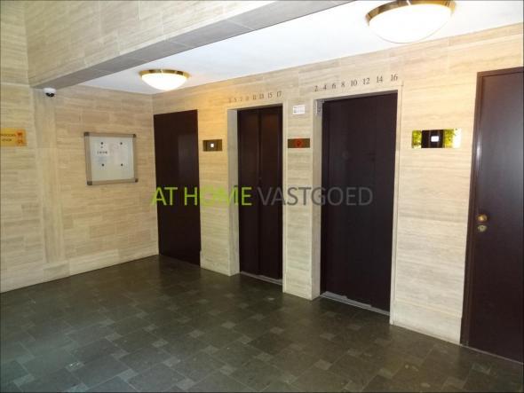 Closed central entrance, mailboxes, elevator to the floors.