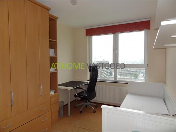 The corner location of the apartment provides a panoramic view of (in various directions) the great city of Rotterdam. The apartment has its own parking space in the garage.