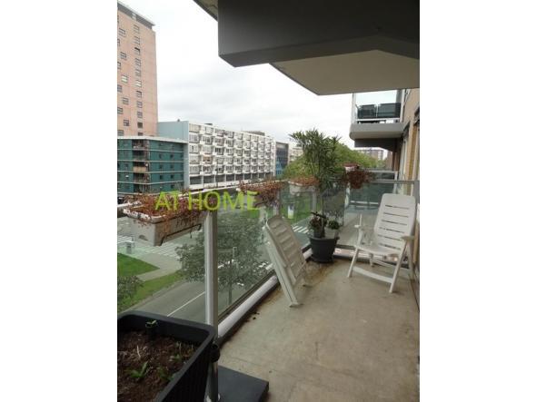 Layout: Central entrance with mailboxes and intercom. Elevator to the 4th floor. Apartment entrance hall with access to all rooms. Spacious living room with open kitchen with all appliances. At the front of the livingroom the balcony is to reach. There are two bedrooms. A big with a double bed and a smaller one with a single bed. The bathroom has a bath and washbasin. The toilet is separate. De apartment has a laminate floor, has double glazing and is heated by central heating.
