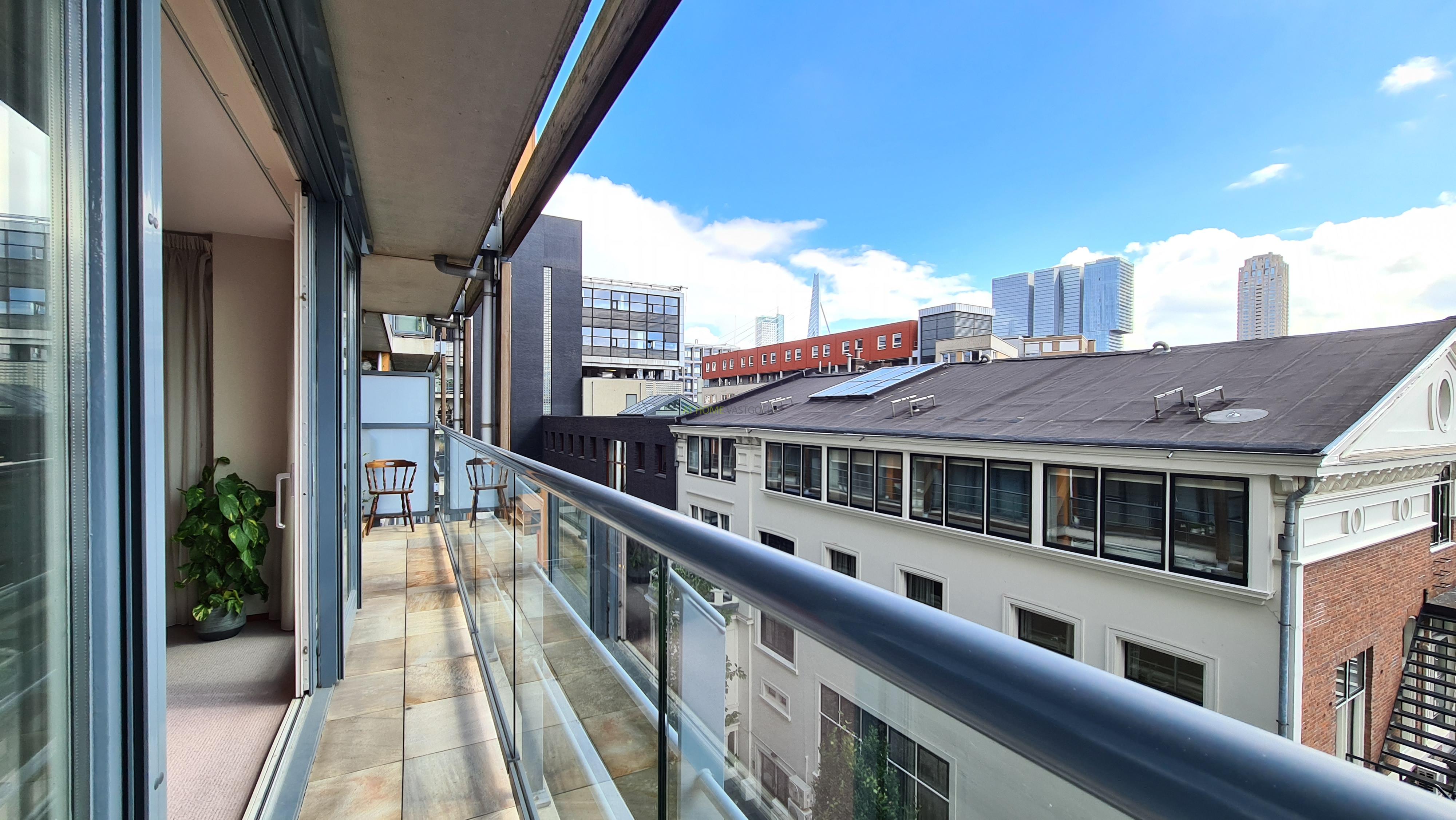 Beautiful and very spacious 4 room apartment of approx. 134m2 with own private parking located on the 4th floor of a neat and well maintained apartment complex. The apartment was completed in 2004 and is furnished, with hardwood frames with double glazing, underfloor heating and floor cooling, luxury kitchen with built-in appliances, luxury bathroom with double sink, shower cabin, bath and design radiator, an indoor private parking space and storage room. The apartment is located in the popular Scheepvaartkwartier within walking distance of various restaurants, bars, shops, Euromast park, public transport, the water taxi and roads.