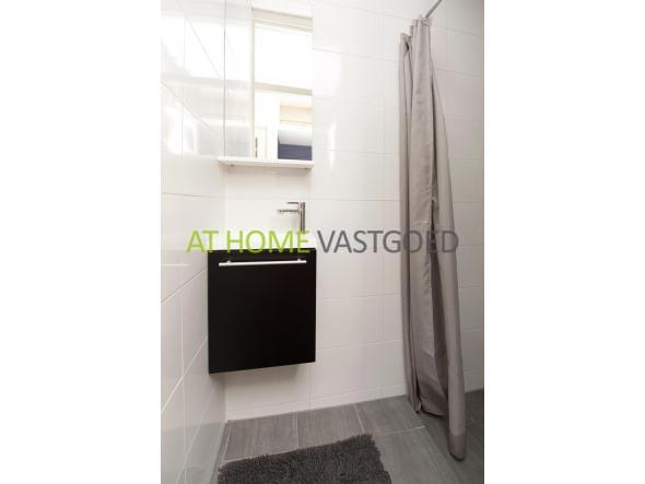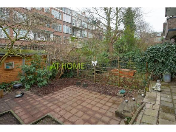 Private entrance, hall, storage with washing machine. The bright spacious living room is located at the rear and features neat laminate flooring and offers access to the east-facing backyard. The neat separate kitchen is also located at the rear and has an entrance door to the garden. Furthermore, the kitchen is equipped with a gas hob, extractor hood, fridge, freezer and dishwasher. Modern bathroom with walk in shower and sink with furniture, the toilet is separate. The spacious bedroom is located at the front and also provided with laminate flooring, the large windows provide a lot of light and beautiful views over a lawn.