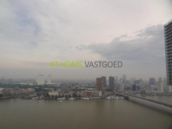 For rent: spacious and bright 3 room apartment with sunny balcony and a beautiful view over the river Maas and the skyline of Rotterdam, located on the 27th floor of the prestigious building New Orleans. The apartment is delivered including a luxurious bathroom and a high quality kitchen with Siemens appliances. A private parking space in the underground car park is available to rent separately.New Orleans is a building with a very high comfort and service. The facilities include a private health club with luxurious fitness equipment, sauna, swimming pool and a sun terrace on the river, beautiful hotel apartments with kitchen and bathroom for your guests.