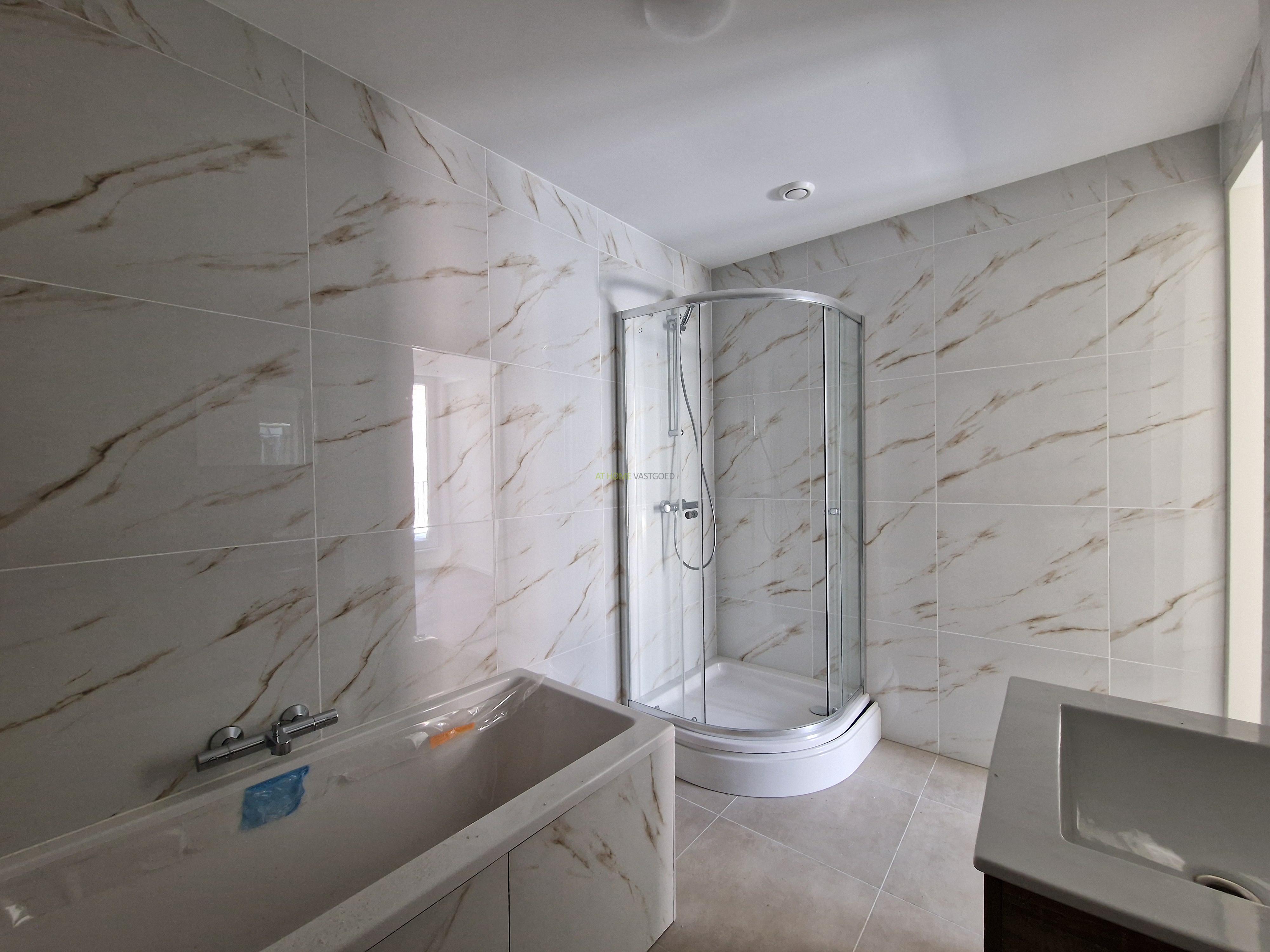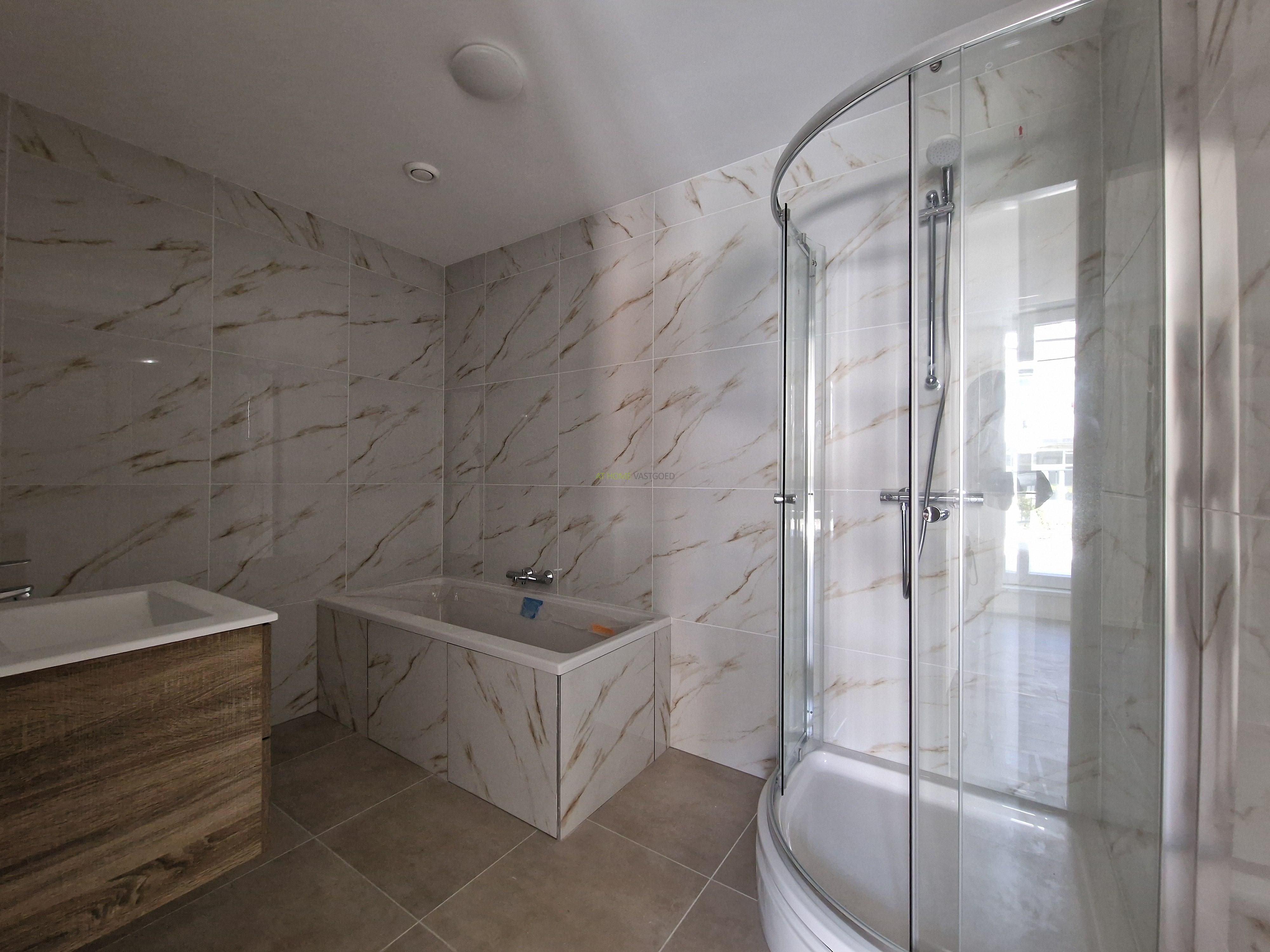 - Bathroom: Luxury bathroom with shower cabin and sink.