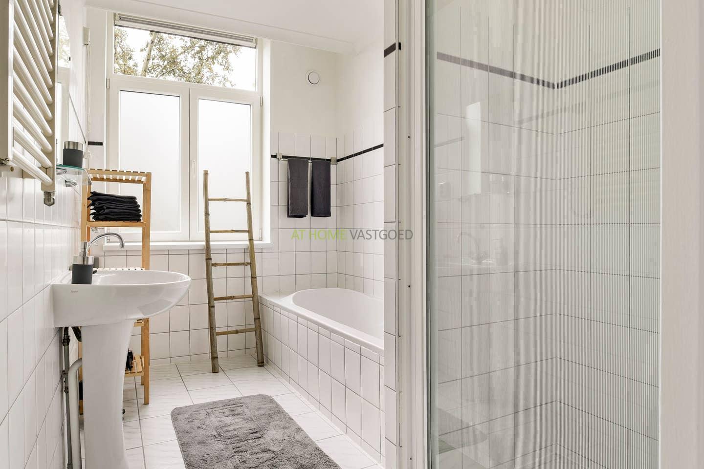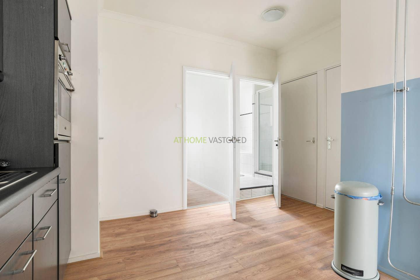 The apartment is well maintained, very spacious and has large windows both in front and back, making it a very light apartment. The open kitchen is equipped with all conveniences, such as a gas hob, extractor hood, fridge, oven and a washing machine. At the back is the spacious bedroom located which is equipped with a 2 person bed.