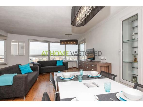32nd floor: entrance / hallway with storage and toilet. Very spacious living room of approx. 44m2 with lots of windows and fantastic panoramic views over Rotterdam. The living room has a luxury kitchen with granite surface, cooking island and appliances including induction hob, oven, dishwasher and fridge / freezer.