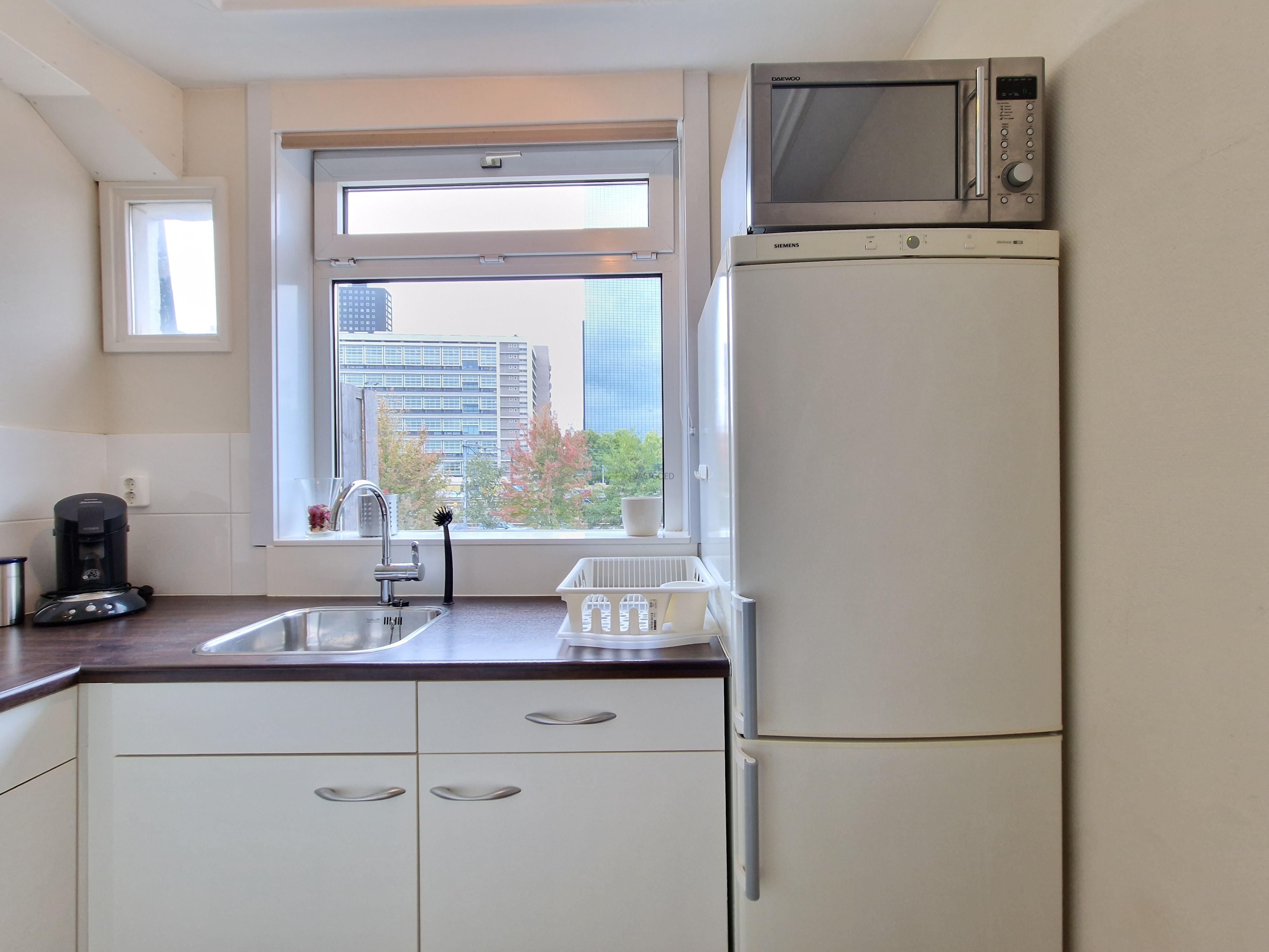 For rent:Beautifully renovated and furnished studio apartment with south facing balcony, located in the center of Rotterdam within 1 minute walking from the central station and near Weena, Hofplein, shops, restaurants, public transport and exit roads.