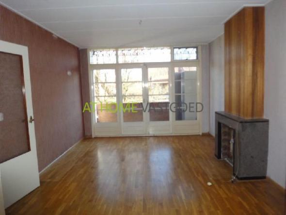 In de woonkamer ligt er een nette laminaat vloer en de rest van de woning wordt kaal opgeleverd.