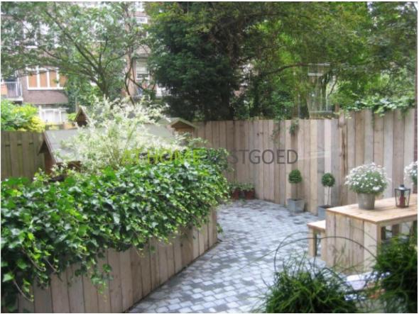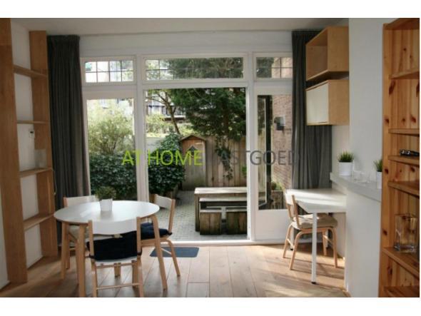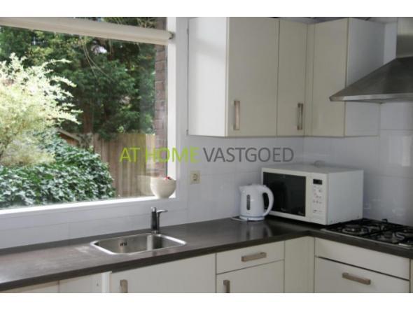 Begane grond: Het huis heeft een eigen voordeur, hal met kastruimte. Er is een nette, moderne keuken voorzien van koelkast, gaskookplaat, afzuigkap en magnetron. De lichte woonkamer heeft openslaande deuren naar de tuin. De ruime slaapkamer heeft 2 inbouwkasten.