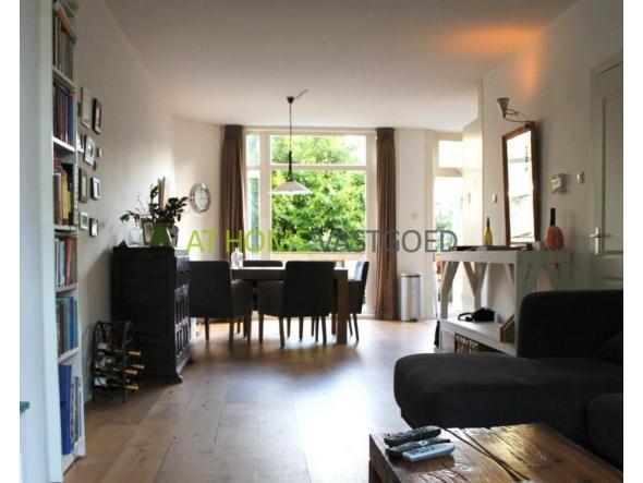 De zeer ruime woonkamer heeft een erker aan de voorzijde en openslaande deuren aan de achterzijde naar de tuin. Alle wanden zijn glad gestuukt en er ligt een eiken houten vloer. De woonkamer heeft tevens een prettige hoogte van 2.7 meter!