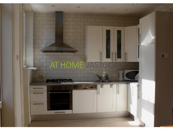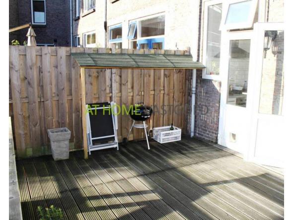 Fraaie open keuken met lichte fronten en voorzien van diverse inbouwapparatuur te weten een 5-pits gaskookplaat, vaatwasmachine, rvs oven, rvs afzuigschouw en koel/vriescombinatie. Via de keuken tevens toegang tot de tuin. Deze is heerlijk zonnig door de ligging op het Zuiden! In de ruime tuin is een stenen berging aanwezig en er is een hardhouten veranda met zonwering gerealiseerd.
