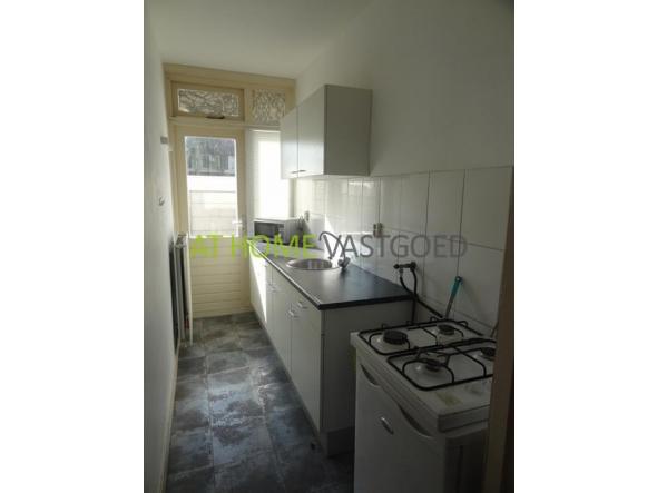 Kleine hal met toegang naar de woonkamer van ca. 20m2. De slaapkamer is aan de achterzijde gelegen. Deze heeft een afmeting van ca 14m2. en bied toegang naar de badkamer. De nette badkamer is voorzien van een douchecabine en wastafel. Via de keuken is er toegang naar de betegelde tuin 4 x 3m. De gehele woning is voorzien van dubbele beglazing en wordt verwarmd door middel van centrale verwarming.