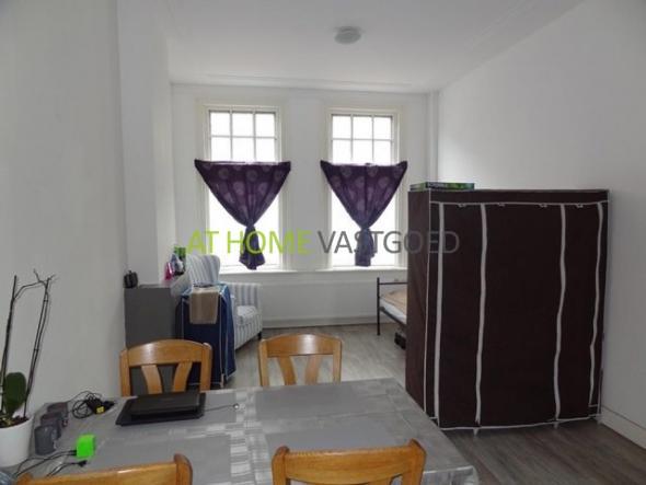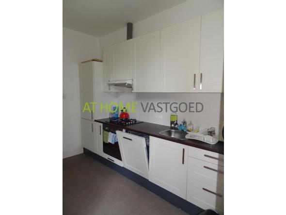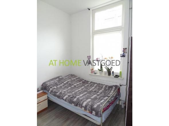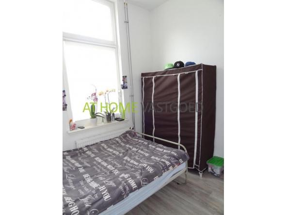 Hal met toegang naar de ruime woonkamer. De woonkamer is voorzien van een nette laminaatvloer, als ook de rest van de woning. De aparte keuken is voorzien van een koelkast, oven en vaatwasser. Aan de achterzijde is de slaapkamer gelegen. De badkamer is te bereiken via een trap. Dit was voorheen een slaapkamer.