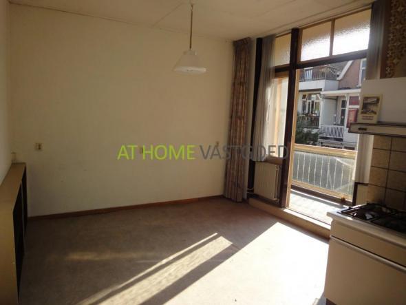 1e etage: entree appartement,hal met toilet, ruime L-vormige woonkamer welke ook goed als slaapkamer kan worden gebruikt, (woon)keuken met toegang tot het balkon en het washok met aansluiting voor wasmachine. De keuken is voorzien van een gaskookplaat en afzuigkap.