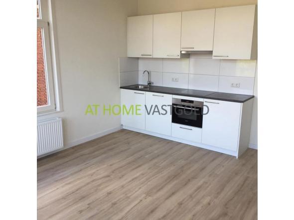 1e verdieping: entree, lichte woonkamer (ca. 22m2) met moderne open keuken, deze is voorzien van een kookplaat, afzuigkap, oven en koelkast. Nieuwe badkamer met douche, wastafel en toilet, de slaapkamer is ongeveer 6,5m2.