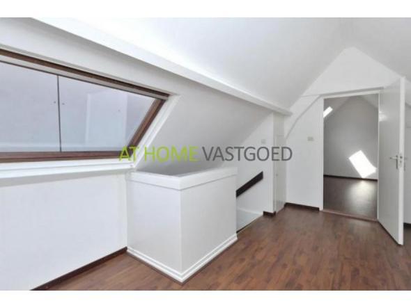 2e etage: Woonkamer met nieuwe open keuken, grote slaapkamer, toilet en douche.