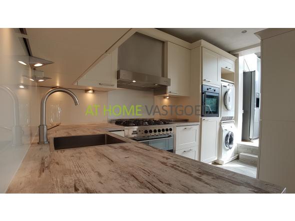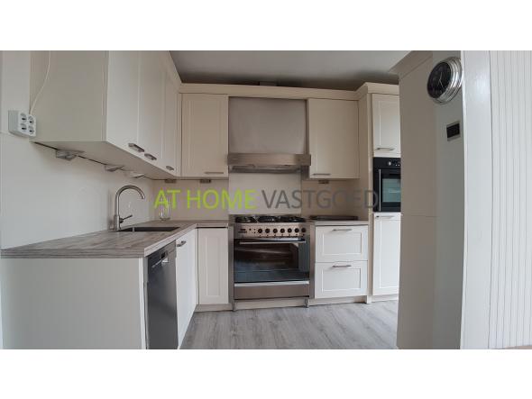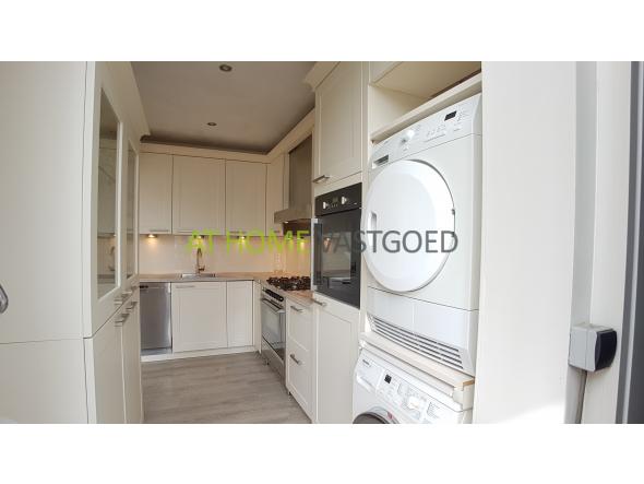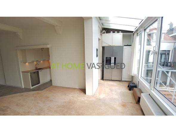 Entree, riante L- vormige woonkamer met grote raampartijen waardoor deze veel lichtinval geniet. De schitterende moderne half open keuken is van alle gemakken voorzien zoals: Amerikaanse koelkast, RVS-gasfornuis met oven, afzuigkap, magnetron, vaatwasser, wasmachine en droger. Het heerlijke dakterras is bereikbaar via de woonkamer en is gelegen op het zuidoosten.