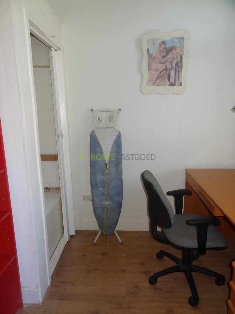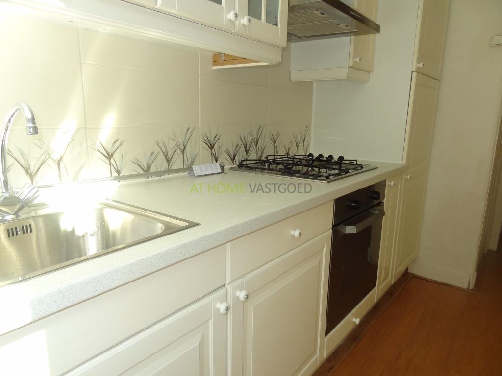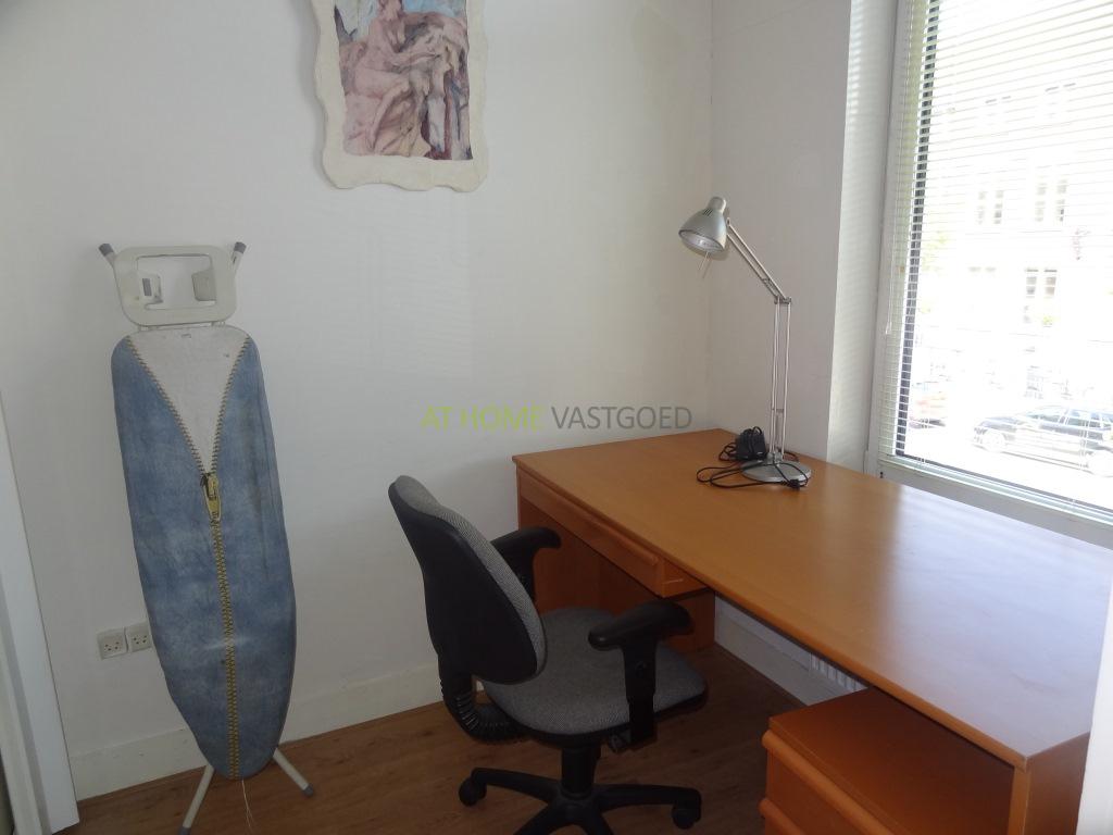 Hal met inbouwkast voorzien van wasmachine. Trap naar de 1e etage. Ruime hal welke toegang verschaft tot alle vertrekken. Separaat toilet. Aan de achterzijde bevind zich de keuken voorzien van koel/vrieskast, oven, gaskookplaat en afzuigkap. Zeer ruime slaapkamer voorzien van tweepersoons bed en kledingkast. Badkamer voorzien van wastafel en douche. Aan de voorzijde is de grote woonkamer met aansluitend de 2e slaap/studeerkamer.