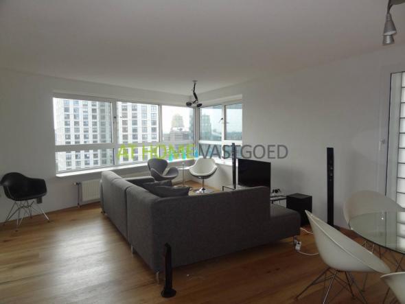 28e verdieping: Lifthal met toegang tot de woning. Entree/hal met praktische inpandige berging en toegang tot de lichte en ruime woonkamer. De woonkamer met open keuken beschikt over een fantastisch en weids uitzicht over de stad. De keuken is voorzien van een dubbel keukenblok en is uitgevoerd met diverse inbouwapparatuur. Direct aangrenzend aan de keuken is de bijkeuken gesitueerd. De praktische bijkeuken/wasruimte is betegeld en voorzien van een wasmachine. De gang geeft toegang tot het separate toilet, de verzorgde badkamer en de twee slaapkamers. De modern betegelde badkamer is onder andere voorzien van een ligbad, wastafel en douchecabine. Alle vertrekken geven een fantastisch uitzicht op de skyline en/of het levendige centrum van Rotterdam.