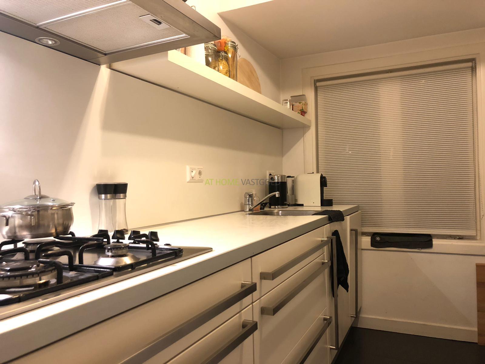 2e verdieping: entree, hal met apart toilet en trap naar de 3e verdieping. Ruime zonnige woonkamer met openslaande deuren naar het balkon. De nette strakke keuken is voorzien van koelkast, vriezer, gaskookplaat, afzuigkap en veel opbergruimte.