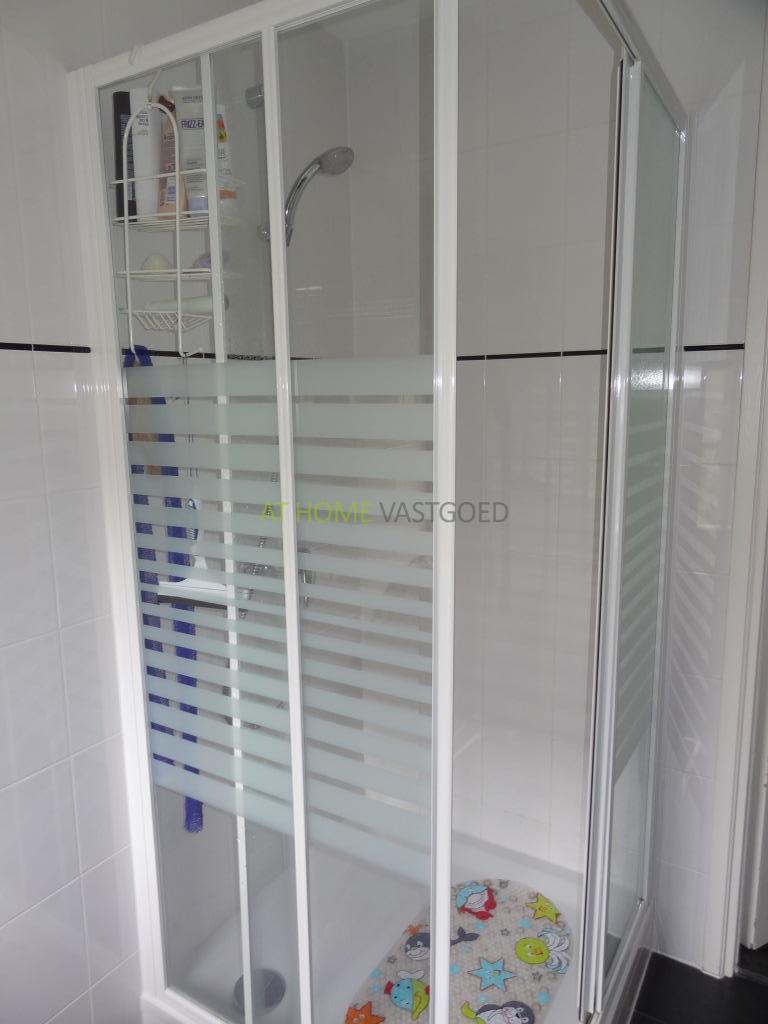 Aan de voorzijde bevindt zich de badkamer, deze is uitgerust met douche en wastafel.