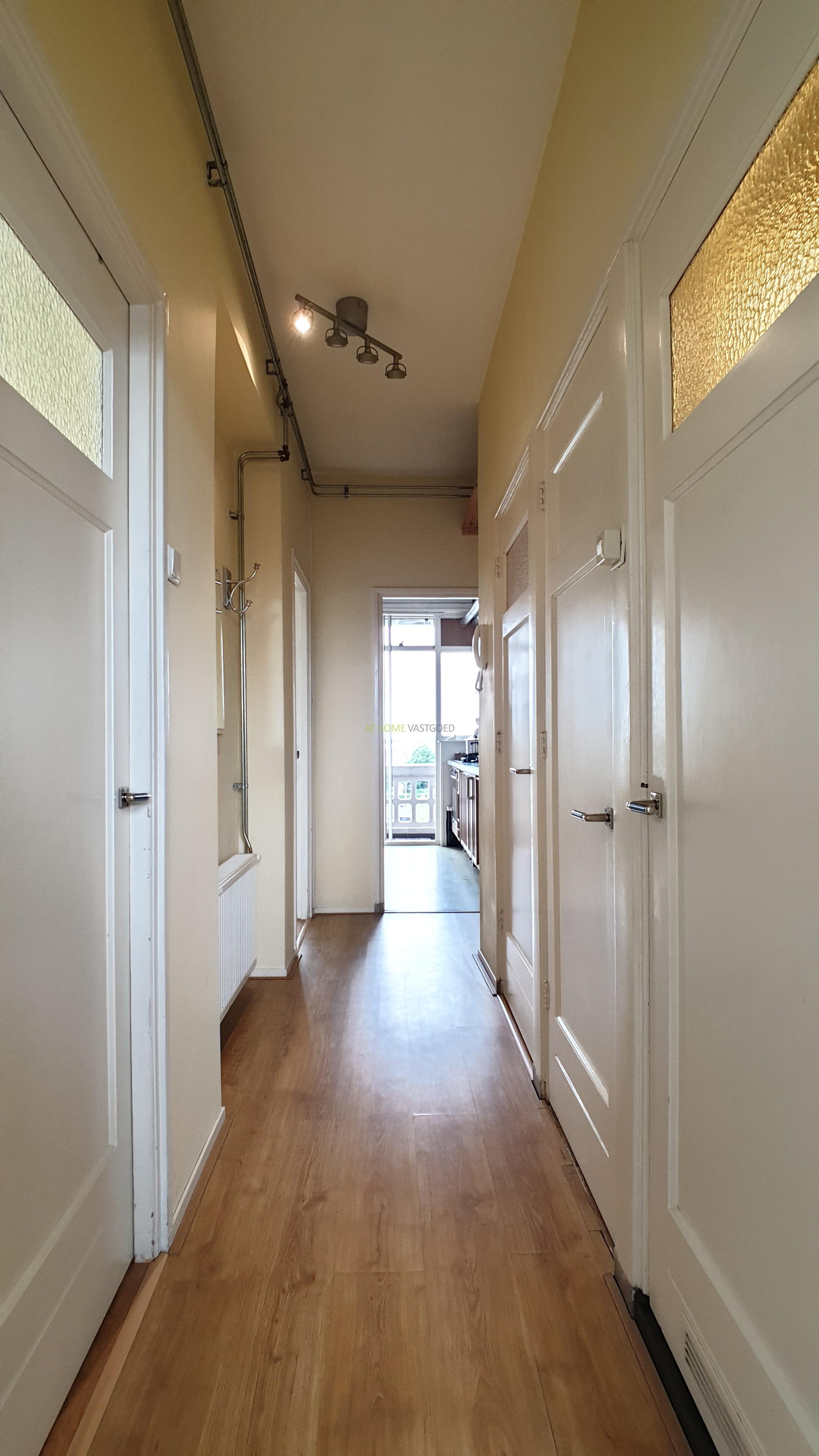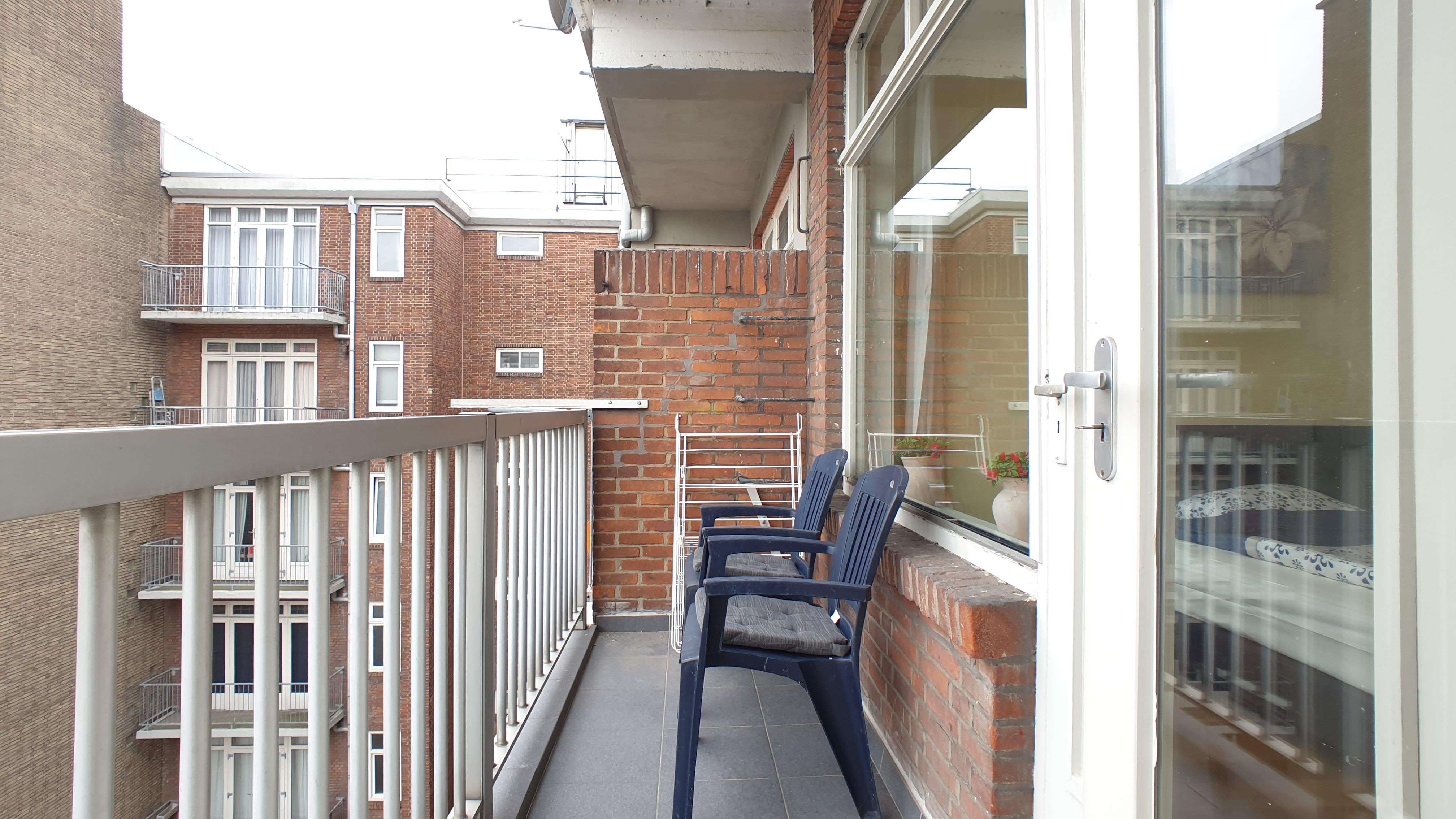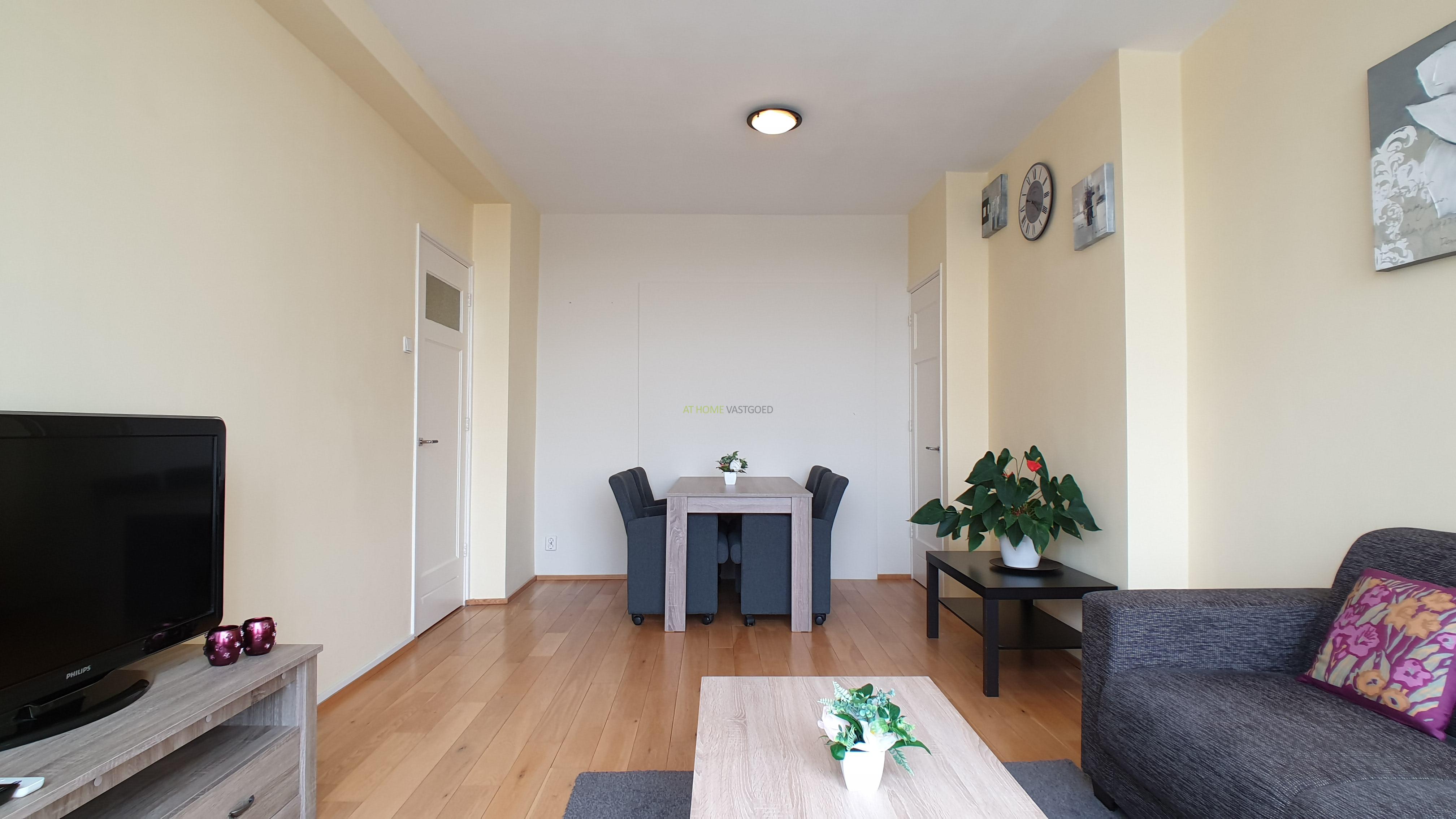 Entree appartement, hal, ruime en lichte woonkamer. Nette keuken voorzien van alle benodigde inbouw apparatuur zoals, oven, afzuigkap, gaskookplaat, magnetron, koel/vrieskast, waterkoker en koffiezetapparaat. De 2 ruime slaapkamers zijn aan de achterzijde gelegen met allebei een 2 persoonsbed, vaste kasten en toegang tot het heerlijk zonnig balkon. Badkamer voorzien van douche en wastafel. kast met wasmachine en cv instalatie en een apart toilet.