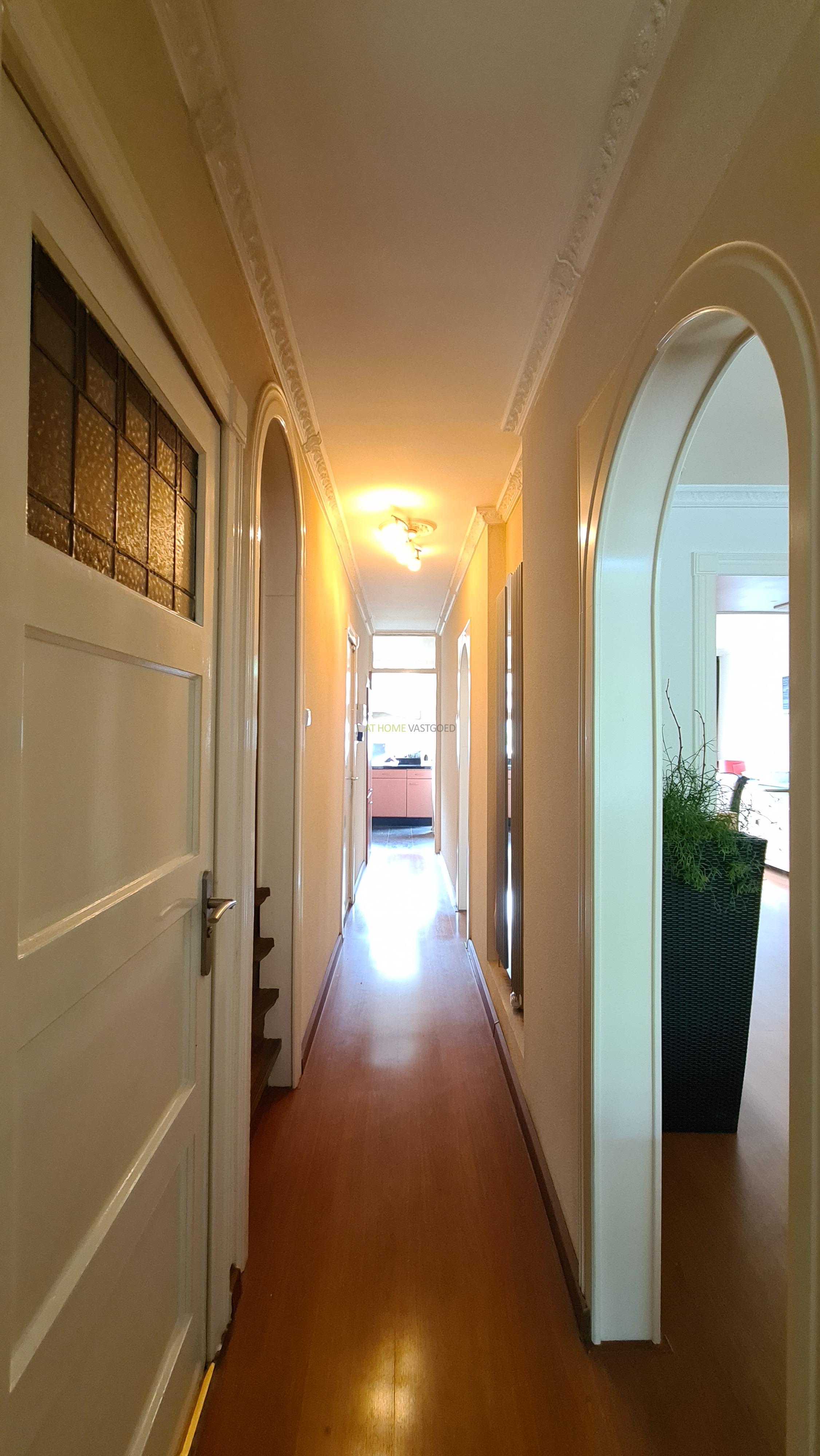 Hal met toegang tot alle vertrekken op deze verdieping. Ruime woonkamer met ensuite de ruime eetkamer, 1e slaapkamers, keuken met inbouw apparatuur met toegang tot het heerlijke balkon en een separaat toilet in de hal.
