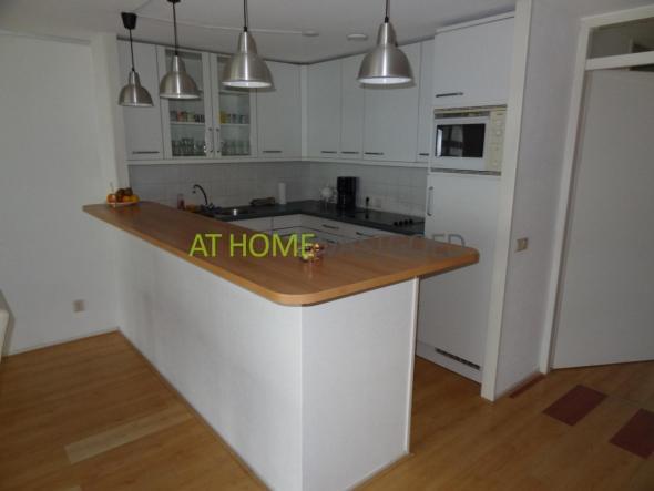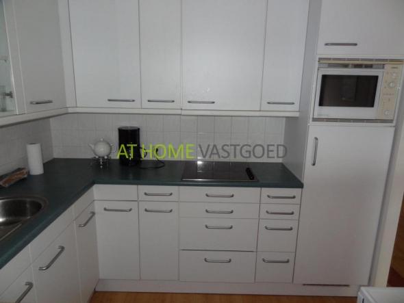 De nette keuken in hoekopstelling is voorzien van diverse inbouwapparatuur zoals een kookplaat, afzuigkap, oven, koelkast en vaatwasser. Verder zijn er twee ruime slaapkamers en een moderne, geheel betegelde badkamer met ligbad/douche combinatie, wastafel, radiator en wasmachine-/droger.