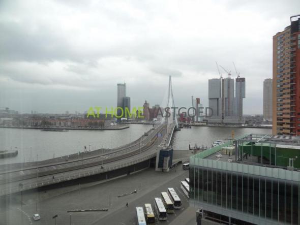 The apartment has a spacious and bright living room with a fully equipped kitchen. Adjacent is a large storage / laundry room with washing machine connection. From the living room you have access to the balcony overlooking the river Maas and the Erasmus Bridge.
