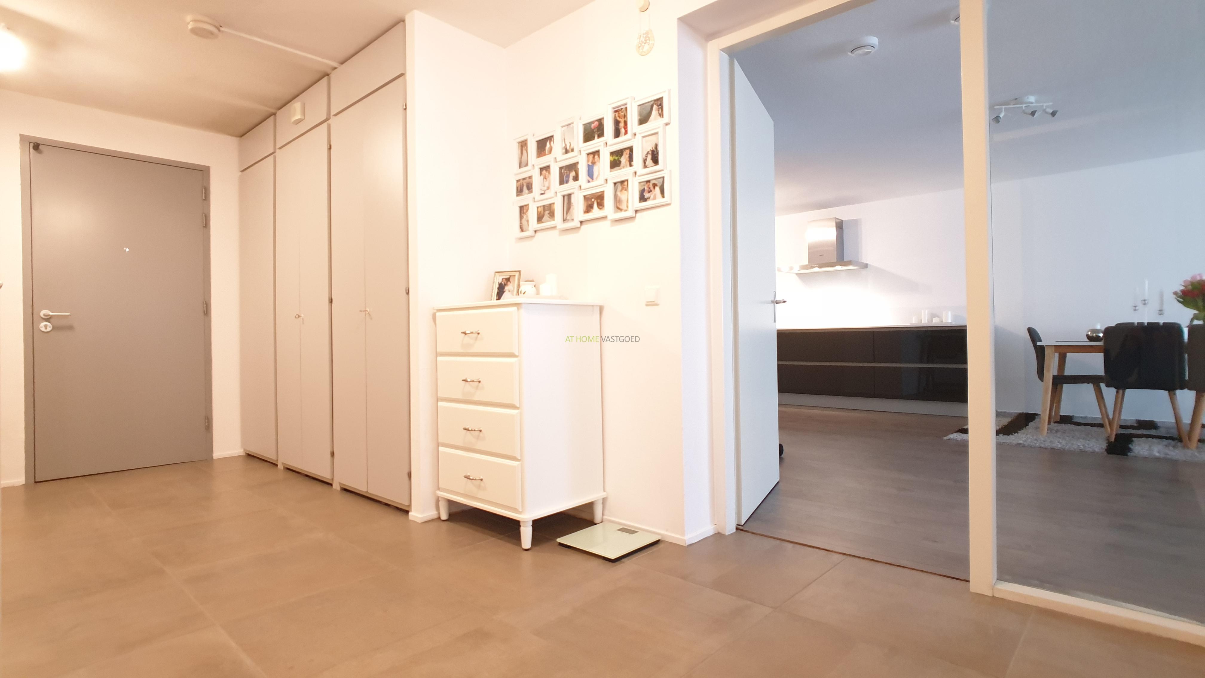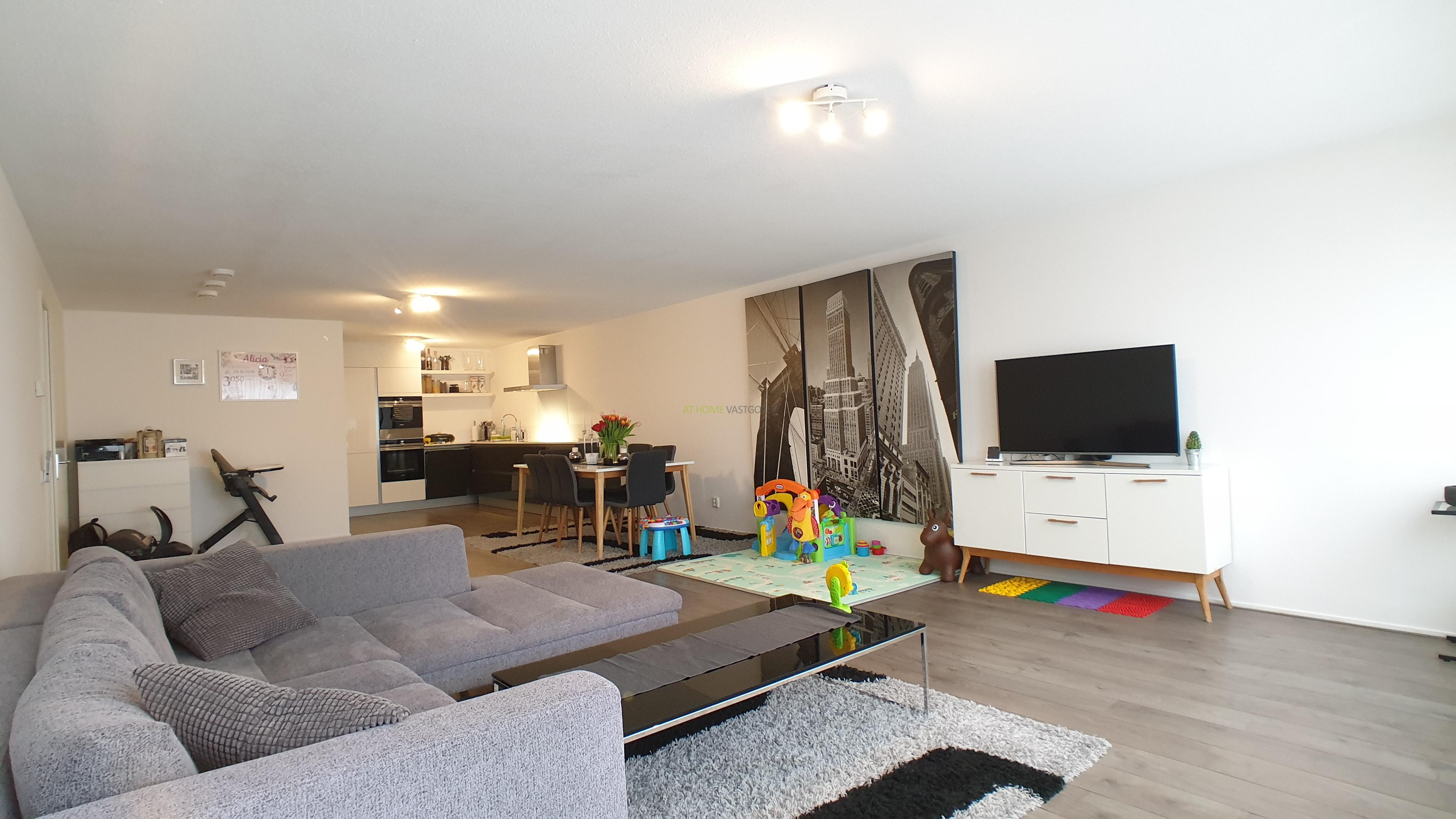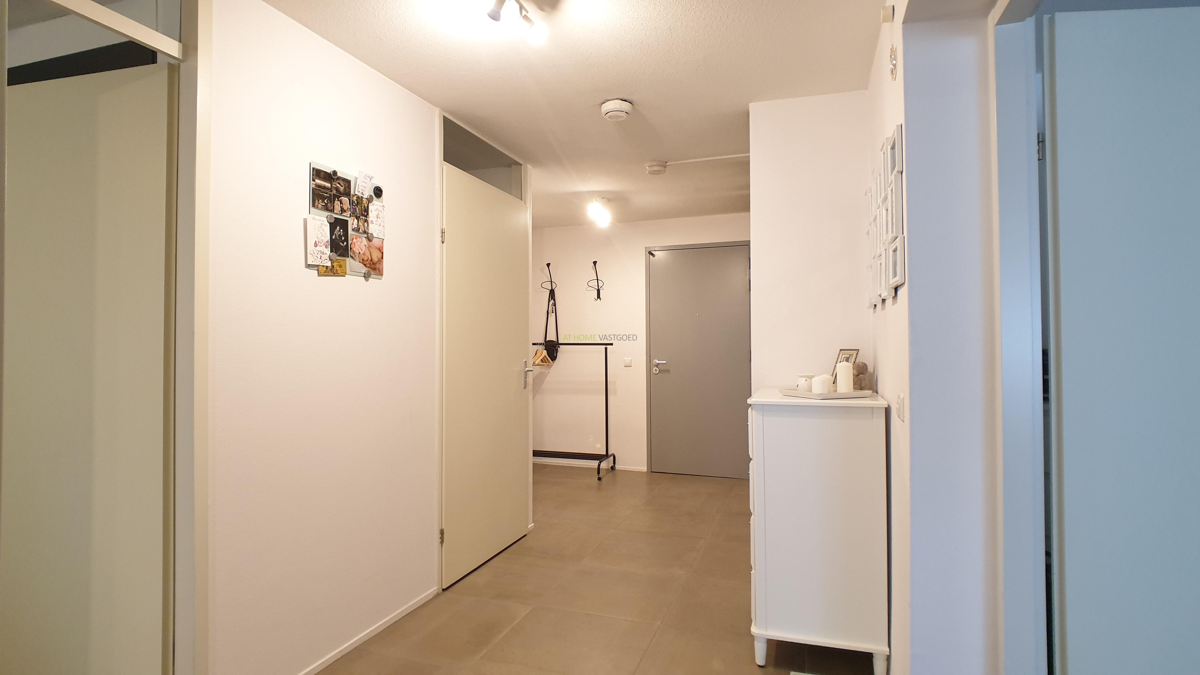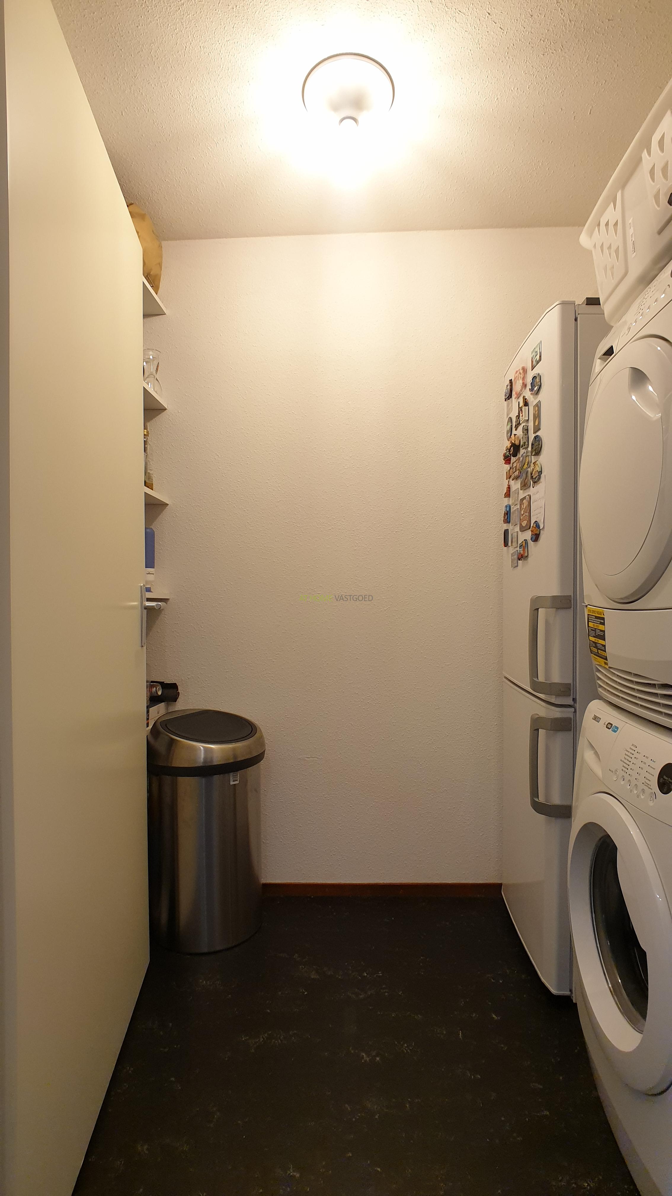Entree, ruime hal, zeer riante en lichte woonkamer met prachtig uitzicht, prachtige open keuken welke van alle gemakken voorzien is met een keramische kookplaat, afzuigkap, koelkast/vriezer, combi magnetron, stoomoven en vaatwasser, met aangrenzend de bijkeuken/berging met wasmachine en droger. Luxe badkamer met heerlijk ligbad, inloopdouche en dubbele wastafel. Het toilet is apart gelegen. Beide slaapkamers zijn gelegen aan de voorzijde waarvan 1 zeer ruime slaapkamer en een iets kleinere slaapkamer. Het gehele appartement is voorzien is van een mooie laminaat vloer en nieuwe meubels.