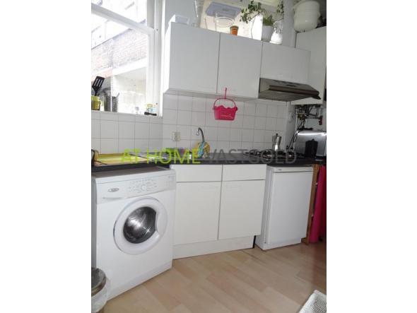 1e etage: entree appartement, hal met toilet, slaapkamer met 2 persoonsbed en kledingkast. Half open keuken met koelkast, gaskookplaat, afzuigkap, magnetron en wasmachine. KLeine maar nette badkamer met douche en wastafel. Via de keuken komt u in de lichte woonkamer welke is voorzien van bankstel, salontafel, TV, kasten en eettafel met stoelen.