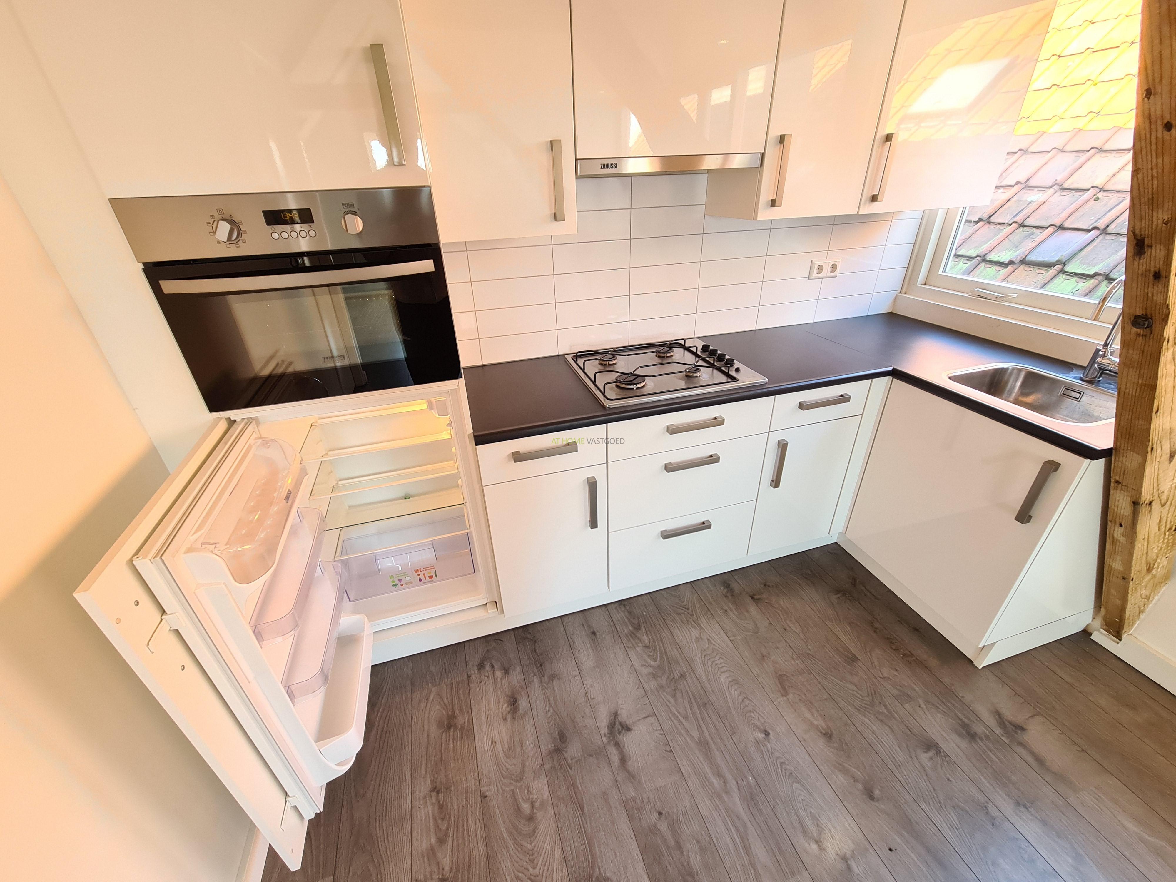 Entree appartement, hal, ruime lichte woonkamer met moderne open keuken. De keuken is voorzien van een koelkast, kookplaat, afzuigkap en oven. Nette badkamer met douche en wastafel, separaat toilet. Het appartement heeft 1 ruime slaapkamer.