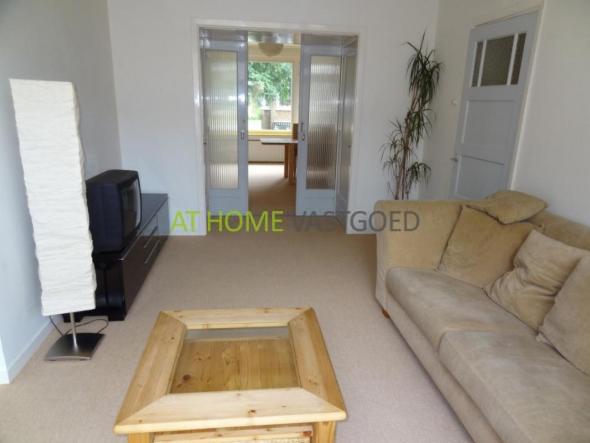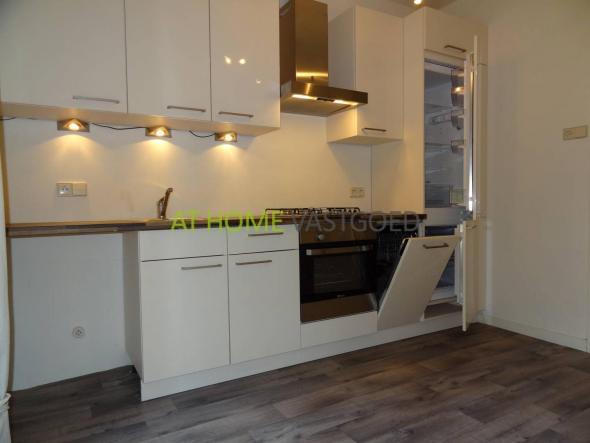 1e etage: hal, separaat toilet, lichte woonkamer, (eet)kamer ensuite welke middels schuifdeuren is te bereiken. Deze kamer is voorzien van voorzien van een boekenkast, eettafel en stoelen. De woonkamer is uitgerust met een 3-zits bankstel, salon tafel, dressoir kast en televisie. Luxe keuken met 4-pits gaskookplaat, afzuigkap, oven, koelkast, vriezer, vaatwasmachine en voldoende kastruimte. Fris betegelde badkamer met inloop douche, wastafel en spotverlichting in het plafond. Slaapkamer met tweepersoonsbed en toegang tot het balkon.