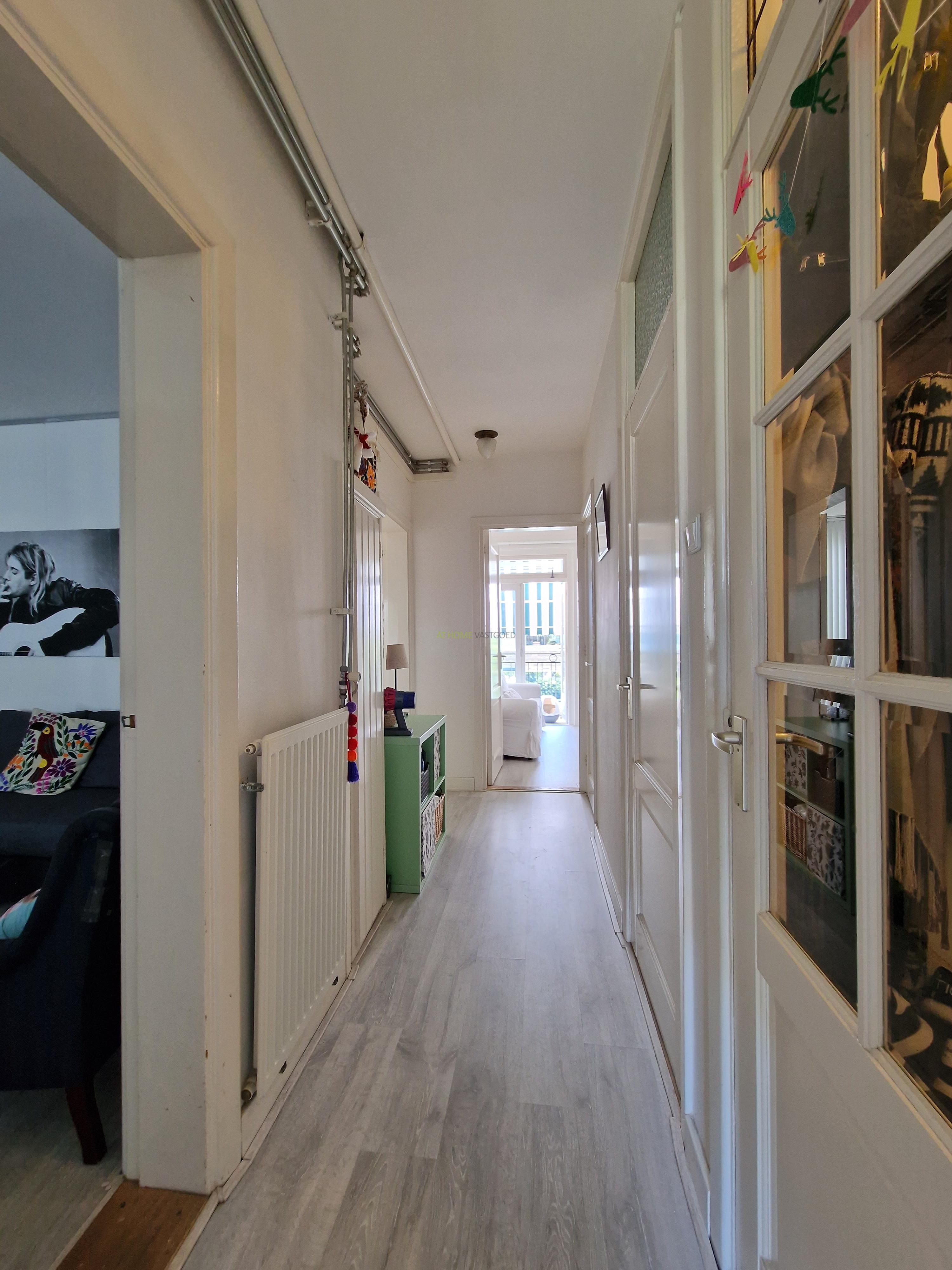 Entree, hal welke toegang biedt tot alle vertrekken, ruime woonkamer met grote ramen waardoor deze veel lichtinval geniet. Nieuwe moderne open keuken voorzien van inductie kookplaat, afzuigkap, koelkast, vriezer, oven en vaatwasser. Twee ruime slaapkamers, beide gelegen aan de achterzijde. Nette badkamer met douchecabine, wastafel, design radiator en wasmachine. Separaat toilet.