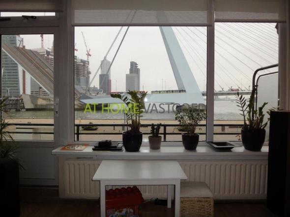 CHARMANT 3-KAMER APPARTEMENT MET SPECTACULAIR UITZICHT EN FANTASTISCH BALKON OVER DE GEHELE BREEDTE, OP HET ZUIDWESTEN GELEGEN AAN DE NIEUWE MAAS EN MET ZICHT OP DE ERASMUSBRUG•Drie-kamer appartement met mooi uitzicht over de maas en een balkon over de hele breedte.