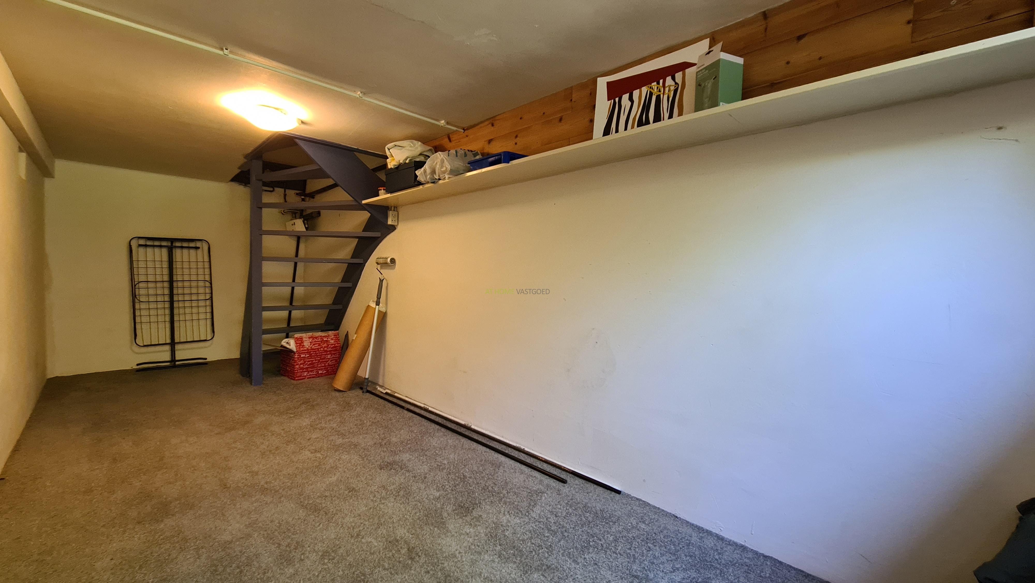 Ruime slaapkamer voorzien van tapijt. Let op hoogte is 1.80 meter.