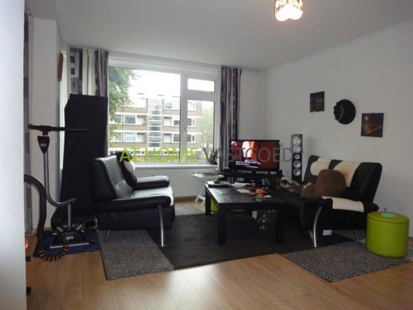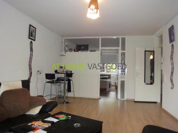 entree appartement, hal met intercom welke toegang geeft tot alle vertrekken. Nette en volledig betegelde badkamer met douche en wastafel, separaat toilet. De mooie complete keuken is voorzien van gaskookplaat, afzuigkap, vaatwasser, koelkast/vriezer en combi magnetron. Bijkeuken met aansluiting voor wasmachine en droger. Ruime en lichte woonkamer met grote ramen en toegang tot het balkon. De ruime slaapkamer gelegen aan de achterzijde is via de woonkamer te bereiken.