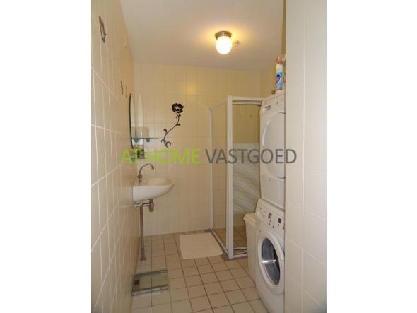 Nette badkamer voorzien van een douchecabine, vaste wastafel wasmachine en droger. Alles netjes betegeld in neutrale kleurstelling. Separaat toilet in lichte kleurstelling met fonteintje.