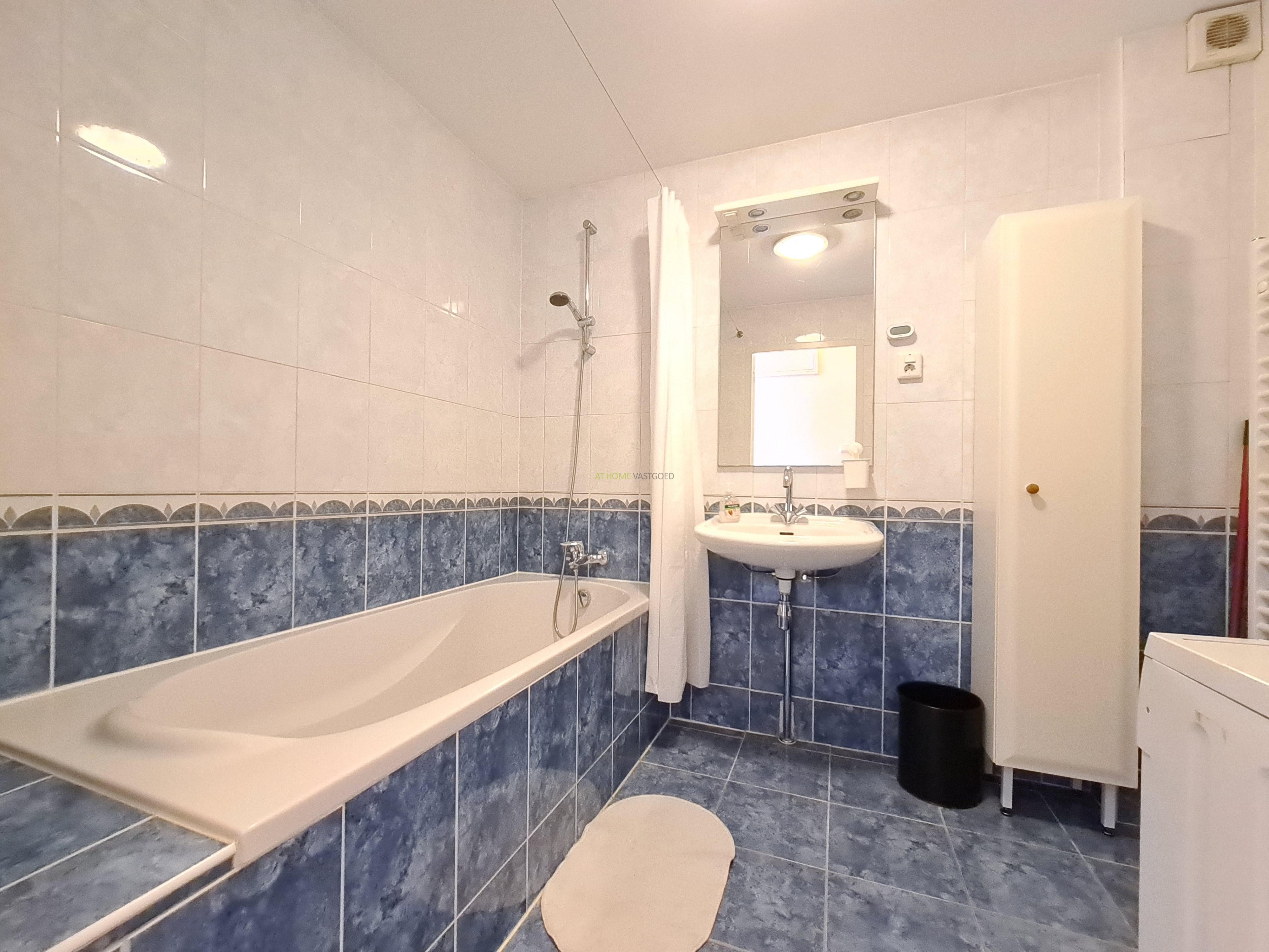De slaapkamer is gelegen aan de achterzijde en is voorzien van een 2 persoonsbed en geeft toegang tot een heerlijk ruim en op het zuiden gelegen balkon. Keurige badkamer met wastafel, ligbad en wasmachine.