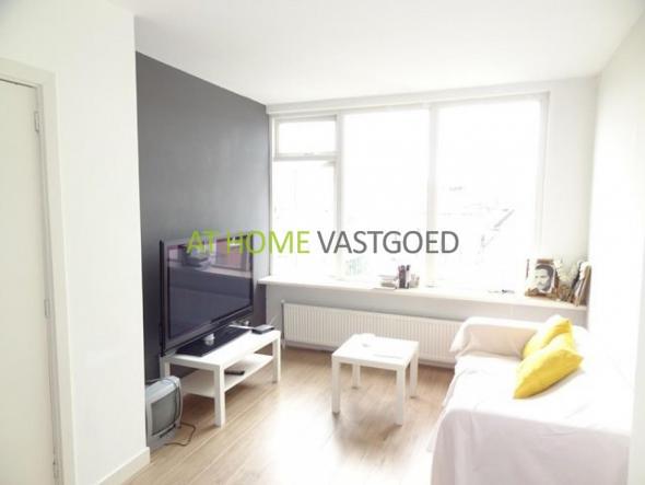 Entree portiek met deurbellen en brievenbussen. Trap naar de 4e etage. Entree appartement. Hal met toegang naar alle vertrekken. Lichte en knusse woonkamer. Een tussenkamer van ca. 8m. en een slaapkamer van ca. 10m2. De keuken is voorzien van een kookplaat, oven, afzuigkap, koelkast en wasmachine. Via de keuken is er toegang naar het balkon.De badkamer en toilet zijn gescheiden.