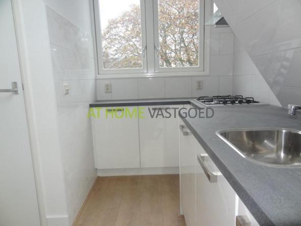 Entree, trap naar de 3e etage. Entree appartement. Hal welke toegang geeft tot alle vertrekken. Ruime woonkamer met hoge plafons en veel lichtinval. Aan de achterzijde heeft u een klein intern balkon. De keuken is voorzien van alle benodigde inbouwapparatuur zoals vaatwasser, ijskast, afzuigkap, kookplaat en combi magnetron. Grote slaapkamer. De nette badkamer is voorzien van douche, wc, wastafel en radiator.