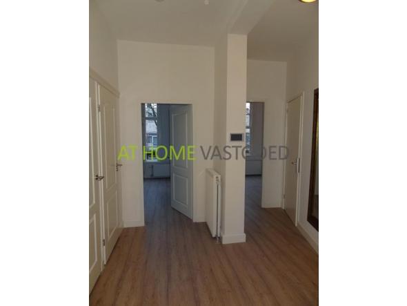 2e etage: hal met toegang naar alle vertrekken. De woonkamer van ca. 40m2 heeft een luxe open keuken voorzien van gaskookplaat, afzuigkap, oven, koelkast/vriezer en vaatwasser. Mooie design badkamer met een duo-douche, een ligbad en een wastafelmeubel. Separaat toilet. Twee ruime slaapkamers, waarvan één met Frans balkon.
