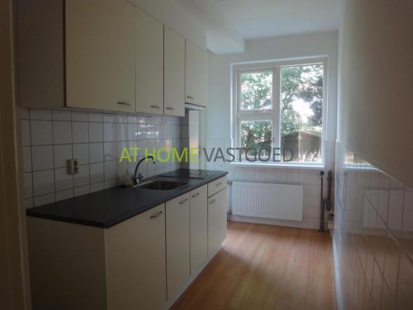 1e etage: entree, hal welke toegang geeft tot alle vertrekken. Nette aparte keuken met koelkast, keramische kookplaat, afzuigkap en aansluiting voor wasmachine. De zeer ruime woonkamer heeft grote ramen waardoor u veel lichtinval heeft. Nette badkamer met douche en wastafel, separaat toilet. 2 slaapkamers, waarvan 1 toegang geeft tot het balkon en de zonnige tuin. Het balkon en de tuin zijn tevens via de keuken te bereiken.