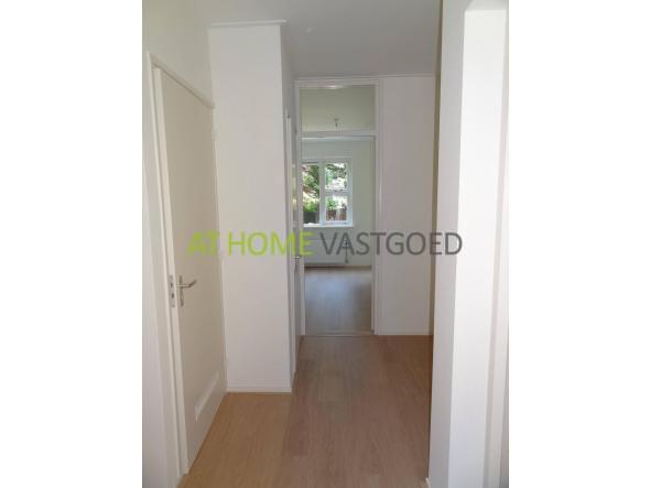 1e etage: entree, hal welke toegang geeft tot alle vertrekken. Nette keuken met koelkast, keramische kookplaat, afzuigkap en aansluiting voor wasmachine. De zeer ruime woonkamer heeft grote ramen waardoor u veel lichtinval heeft. Nette badkamer met douche en wastafel, separaat toilet. 2 slaapkamers, waarvan 1 toegang geeft tot het balkon en de zonnige tuin. Het balkon en de tuin zijn tevens via de keuken te bereiken.