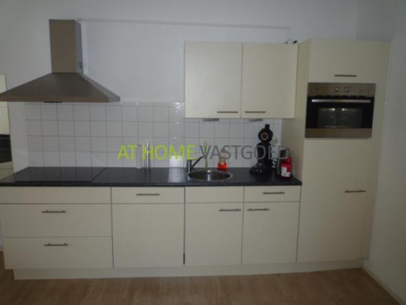 1e etage; entree appartement, woonkamer in L vorm met nette open keuken welke is voorzien van vaatwasser, koelkast/viezer, combi magnetron, inductie kookplaat en afzuigkap. De