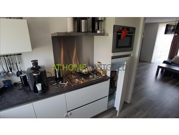 De woning is voorzien van een moderne open keuken, voorzien van een keukenblok in een L-opstelling, uitgerust met een 4-pits gaskookplaat, afzuigkap(zonder motor), combimagnetron, koelkast(met vriesvak), vaatwasser en luxe mengkraan.