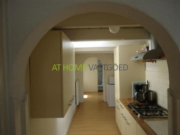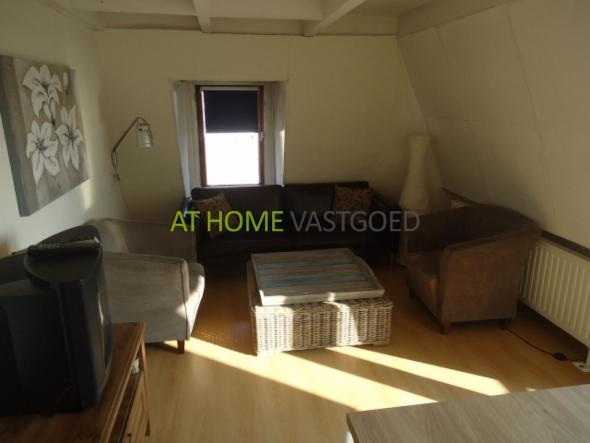Via de keuken komt u in de woonkamer. De schuine balken in de knusse woonkamer geven het appartement sfeer. Vanaf het balkon op het zuiden kijkt u uit over de gezellige winkelstraat.
