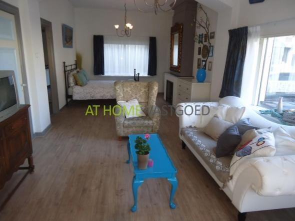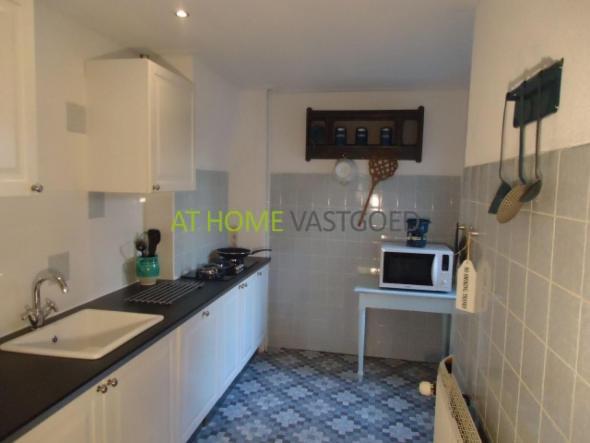 Deze is fris ingericht met een mooie wit leren bank en TV, en leuke kleuraccenten. De eettafel voor 4 personen staat in de lichte uitbouw van de kamer. In de woonkamer staat tevens een tweepersoonsbed. De slaapkamer heeft twee eenpersoonsbedden. De keuken bereik je ook vanuit de hal bij de voordeur. Deze is nieuw en van alle gemakken voorzien, met onder andere een vaatwasser. Vanuit de keuken kom je buiten op een klein binnenplaatsje. De ruime badkamer beschikt over een douche en een wastafel.