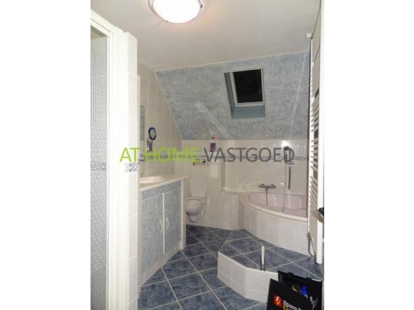 1e verdieping; badkamer met hoek ligbad, douchecabine, wastafel, 2e toilet, handdoekradiator, tot het plafond betegeld, 3 slaapkamers.