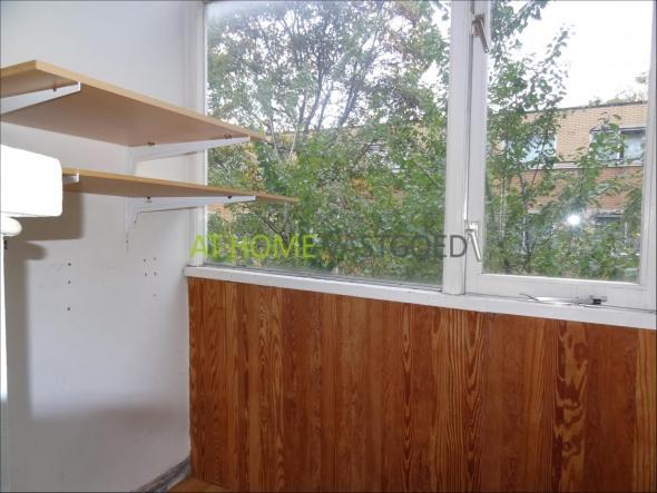 De kamer is gelegen op de 1e etage de voorzijde is L- vormig en is voorzien van laminaat, centrale verwarming en balkon. Keuken, douche en het toilet worden gedeeld met 1 vrouwelijke medebewoonster.
